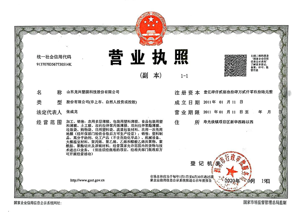 山東龍興塑膜科技股份有限公司前身為山東壽光龍興農(nóng)膜有限公司組建于2011年,2018年10月重組,目前是壽光市國(guó)有控股公司、高新技術(shù)企業(yè),是專業(yè)生產(chǎn)高檔農(nóng)用薄膜、工業(yè)用薄膜的企業(yè),是一家以產(chǎn)品制造為主,集科研開發(fā)、產(chǎn)品設(shè)計(jì)、技術(shù)服務(wù)于一體的綜合性企業(yè)。公司現(xiàn)有職工228人,各類工程技術(shù)人員97人,管理人員20余人,注冊(cè)資金14234.2096萬(wàn)元,總資產(chǎn)102314萬(wàn)元,目前是壽光市國(guó)有控股公司、高新技術(shù)企業(yè)。公司是中國(guó)塑料加工工業(yè)協(xié)會(huì)農(nóng)膜專業(yè)委員會(huì)會(huì)員單位,中國(guó)復(fù)合材料工業(yè)協(xié)會(huì)會(huì)員單位,中國(guó)塑料加工工業(yè)協(xié)會(huì)雙向拉伸聚酯薄膜專業(yè)委員會(huì)會(huì)員單位...